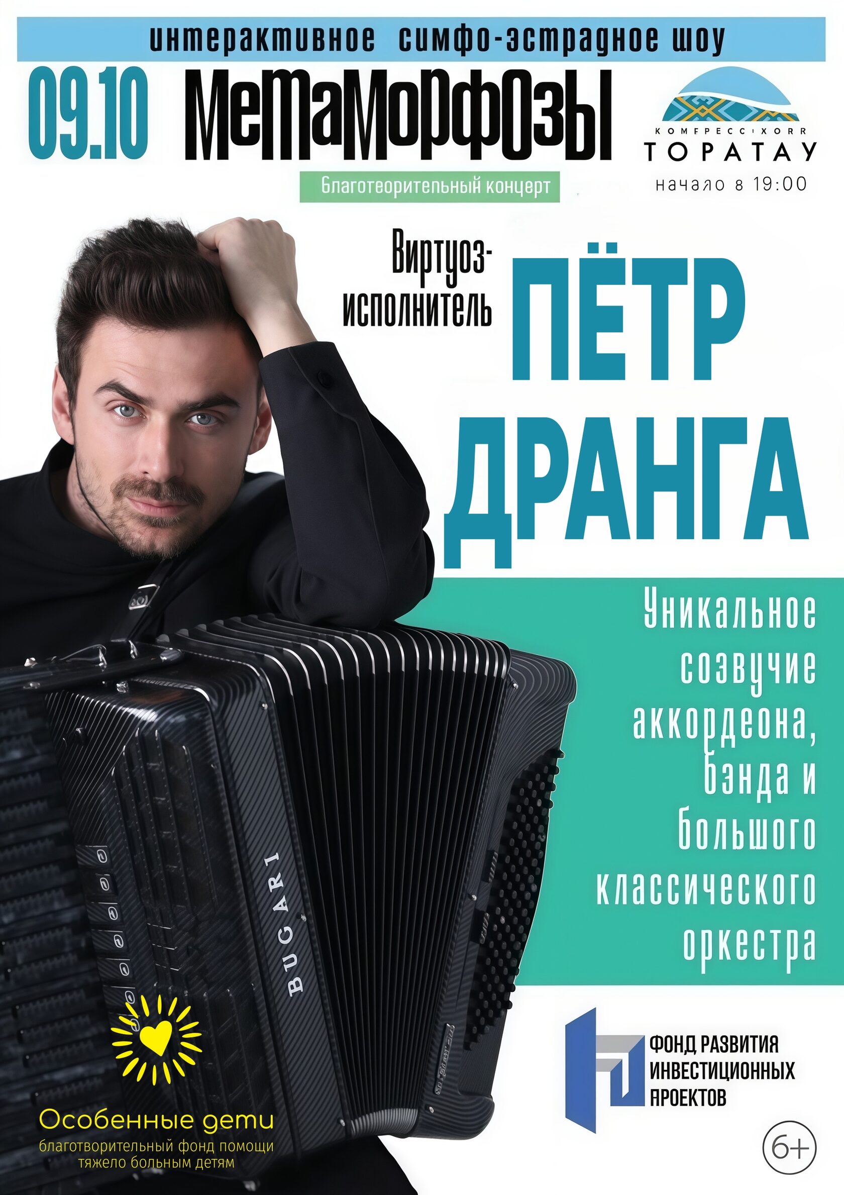 Мы приглашаем вас на благотворительный концерт удивительного музыканта, аккордеониста Петра Дранги, который состоится 9 октября в 19:00 в Конгресс-холле «Торатау».